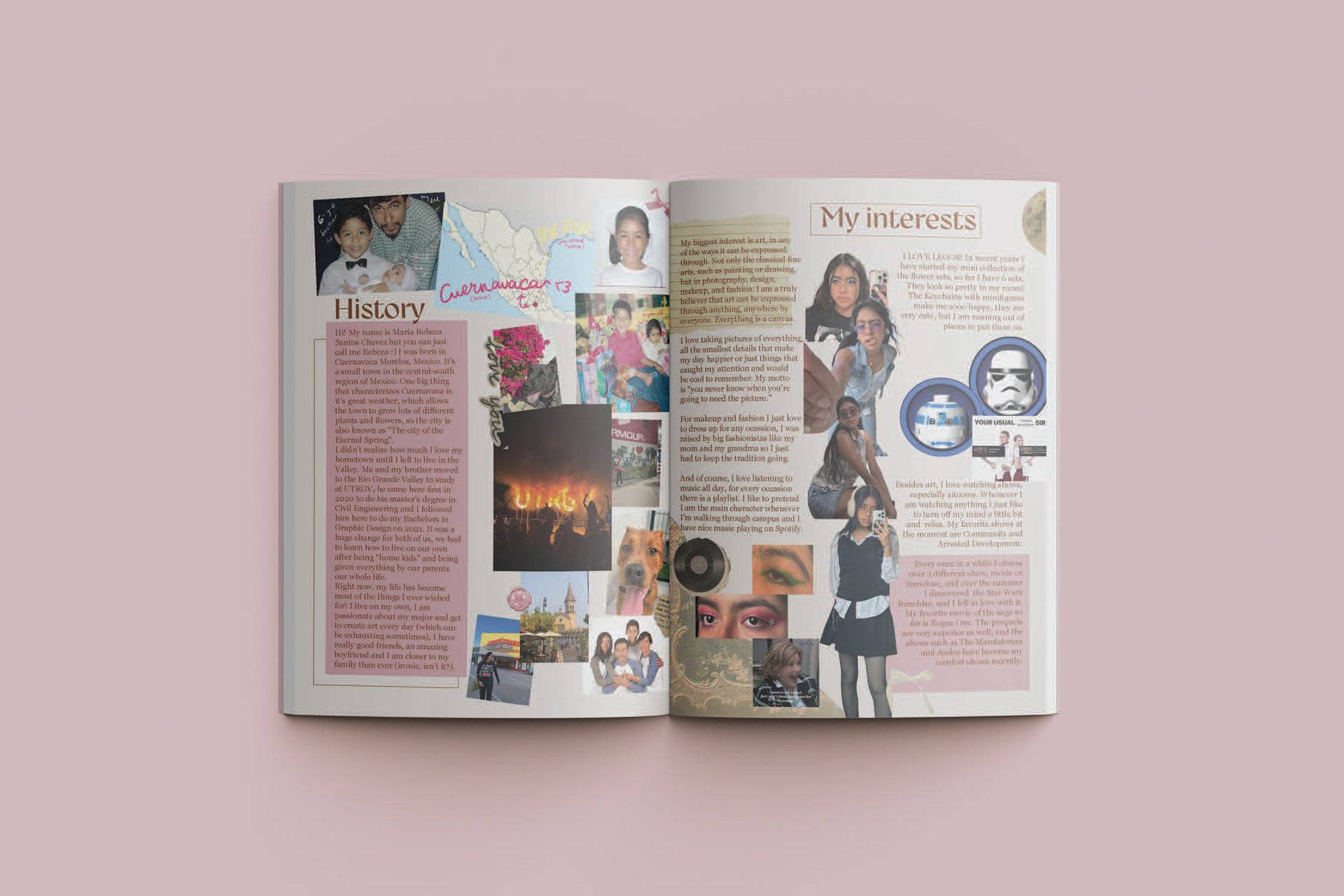 My name is Maria Rebeca Santos Chavez, a Visual Communications major graduated from The University of Texas Rio Grande Valley. I was born and raised in Cuernavaca, Morelos, México, where I completed my primary education. I began my higher education journey at the School of Art and Design at UTRGV in 2021.
